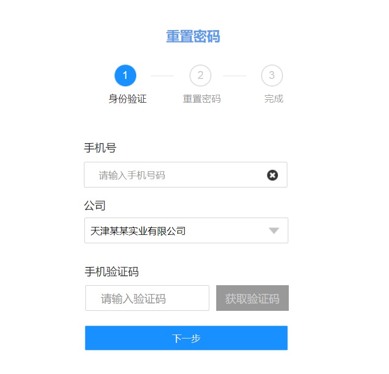 忘记密码流程-手机号有简单的验证,发送短信按钮的交互